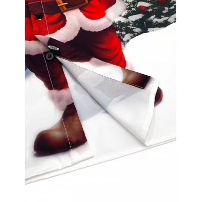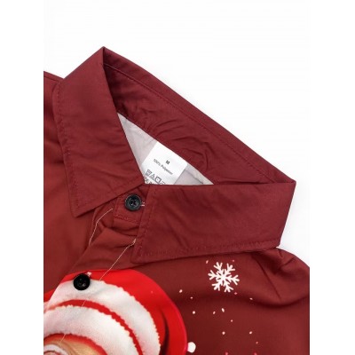 [Christmas Santa Print Shirt] Christmas Santa Print Long Sleeve Shirt - Polyester 100%, Regular Fit, Casual Lapel Collar, Button Detail, 120gsm - Perfect for Halloween, Thanksgiving, New Year Celebrations